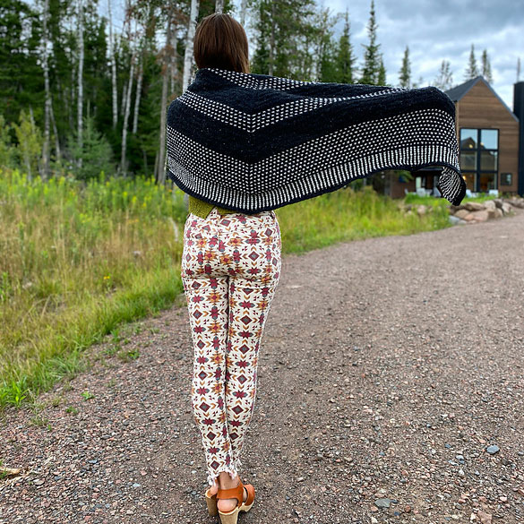 I started designing this shawl while I was watching Downy Woodpeckers work outside my windows in April. I was inspired by their stark plumage.